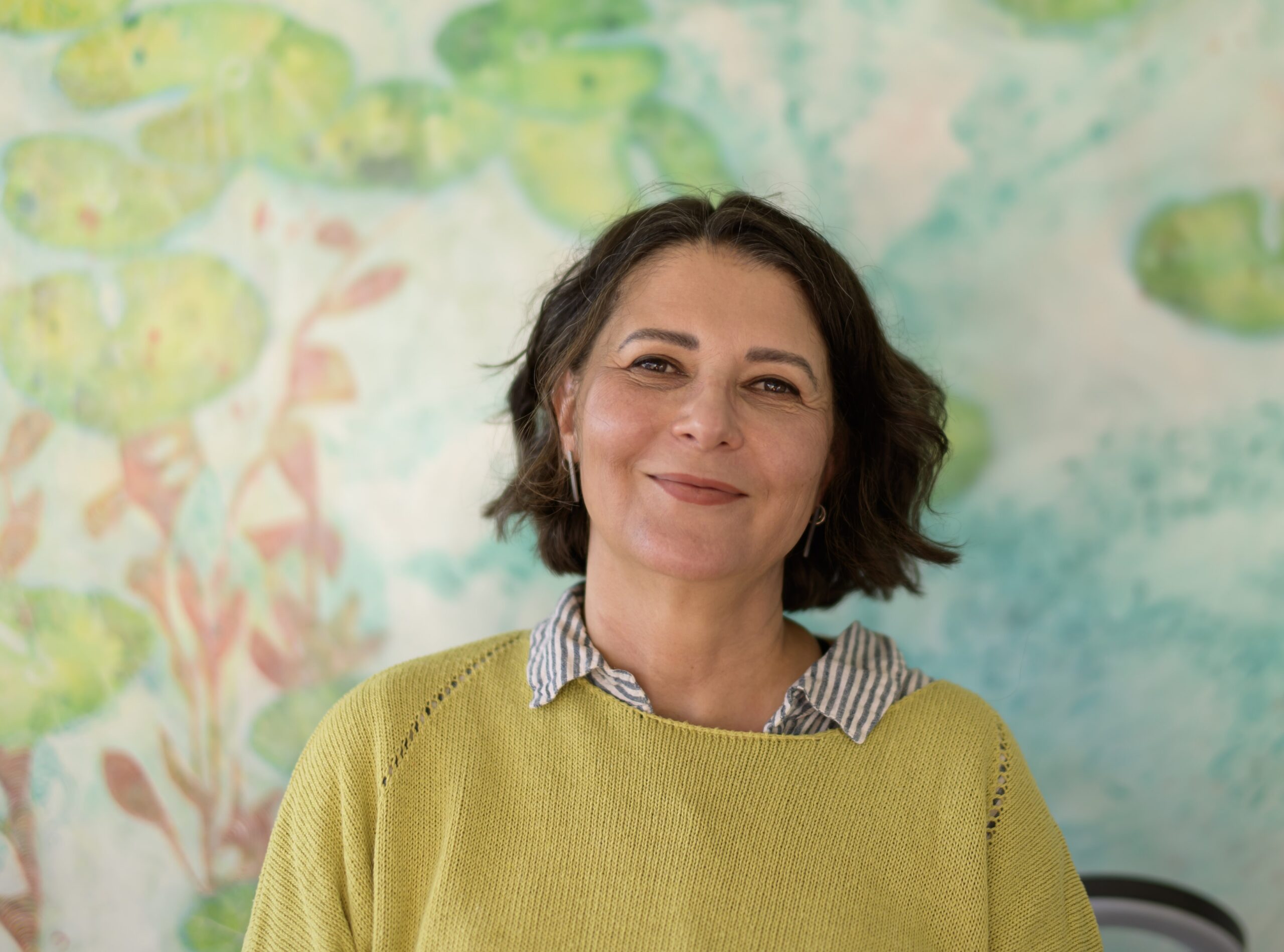 Her work across painting, ceramics, and printmaking explores the rhythm of lines and the language of patterns.