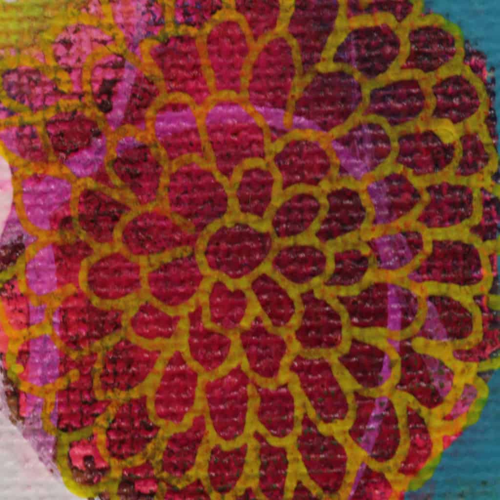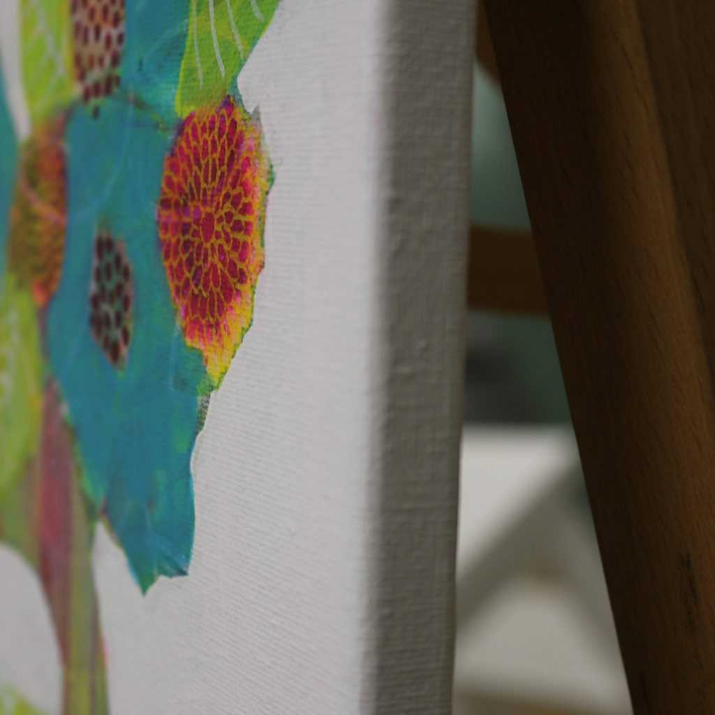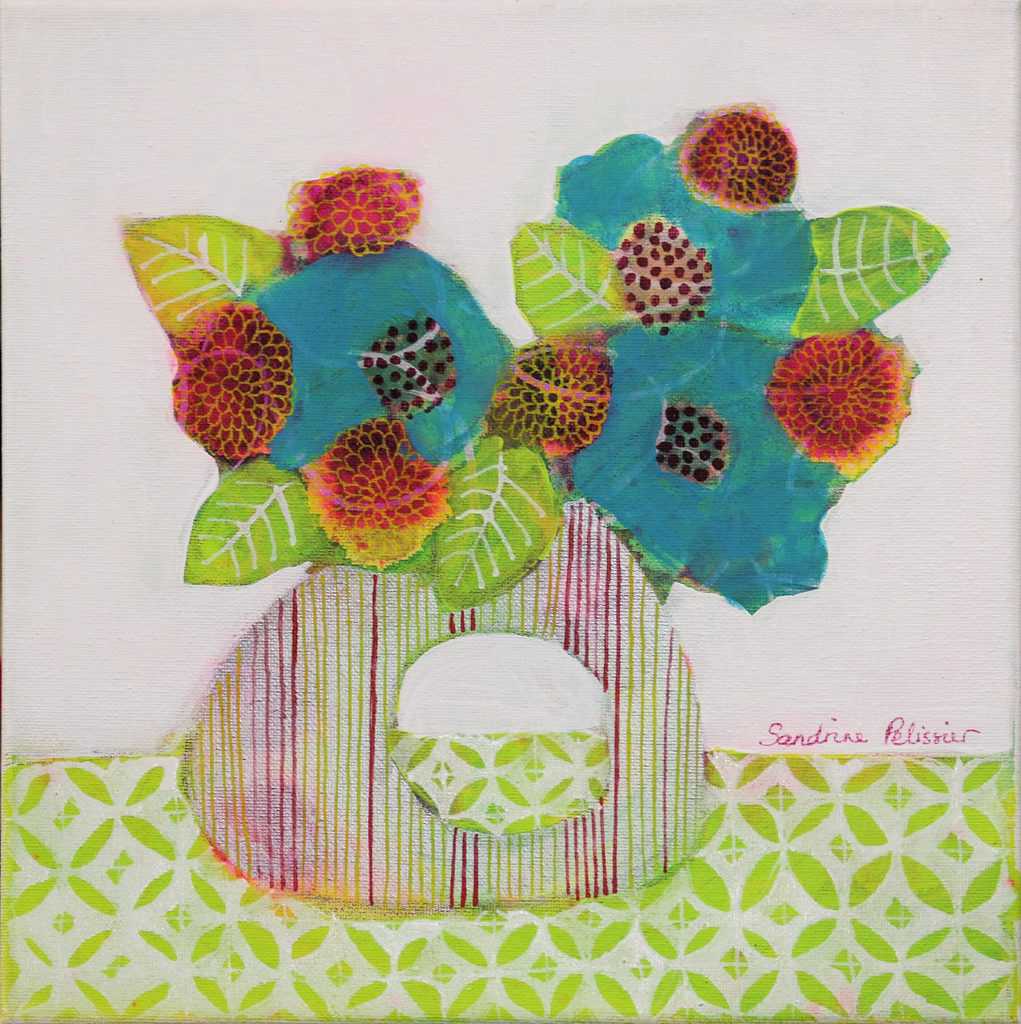 My wife loves color and flowers, and loved Sandrine’s art that we saw in a gallery on a trip to BC. I took a picture of it and surprised her with it for Christmas. She absolutely loved it. Wanted it hung above the stove so she could see it often, since she also loves cooking.