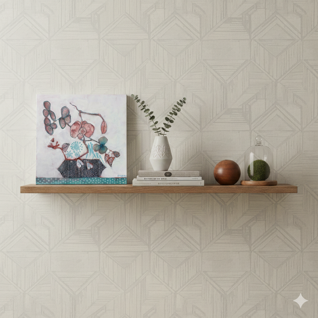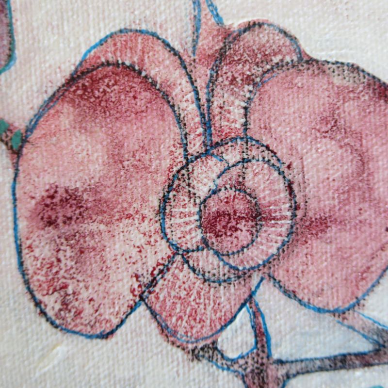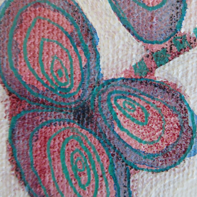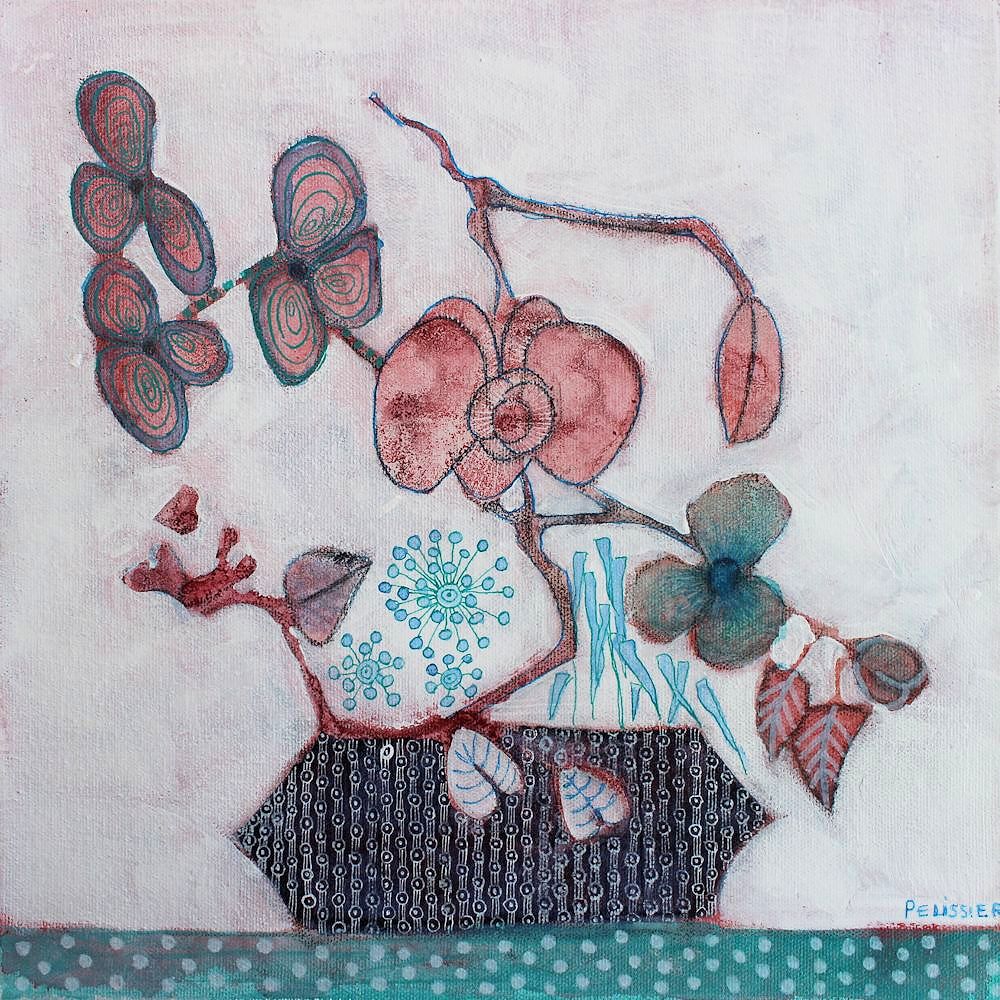 Medium: Mixed media on canvas, varnished, ready to be hung. Size: 12 x 12 x 1 1/2 inches