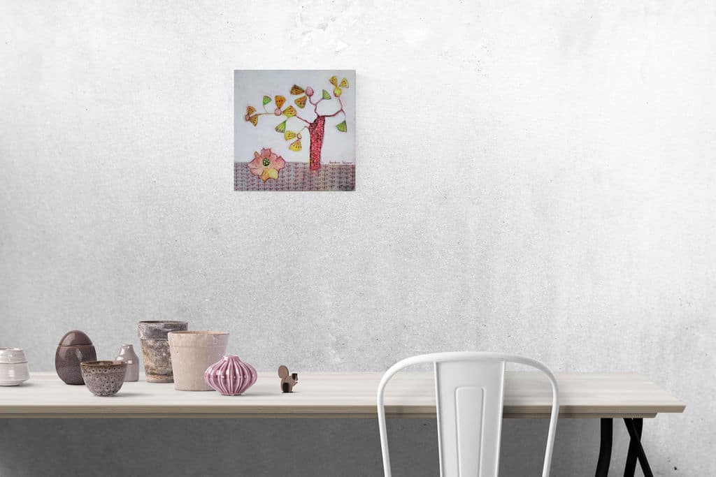 My wife loves color and flowers, and loved Sandrine’s art that we saw in a gallery on a trip to BC. I took a picture of it and surprised her with it for Christmas. She absolutely loved it. Wanted it hung above the stove so she could see it often, since she also loves cooking.