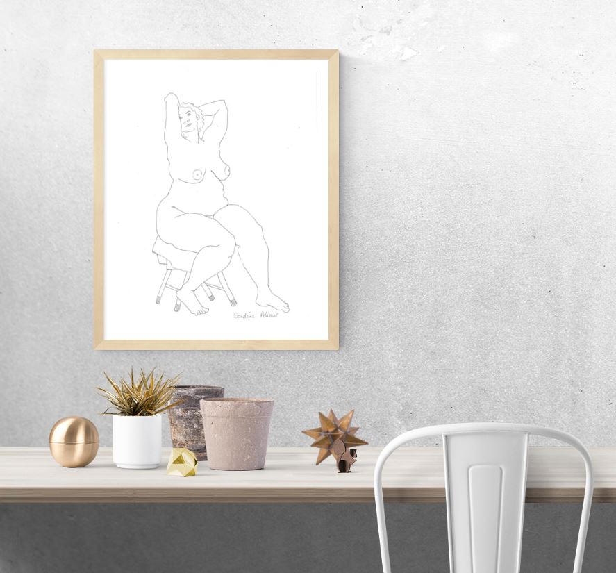 Sandrine has the uncanny ability to draw and capture the essence of the human figure. I know, because I’ve been part of the same figure drawing group with her for almost 2 years. I also know it takes real skill, talent and acute observation to be able to draw like that—and she makes it all look so effortless—believe me— it’s not. I wanted her art to be part of my very eclectic art collection.