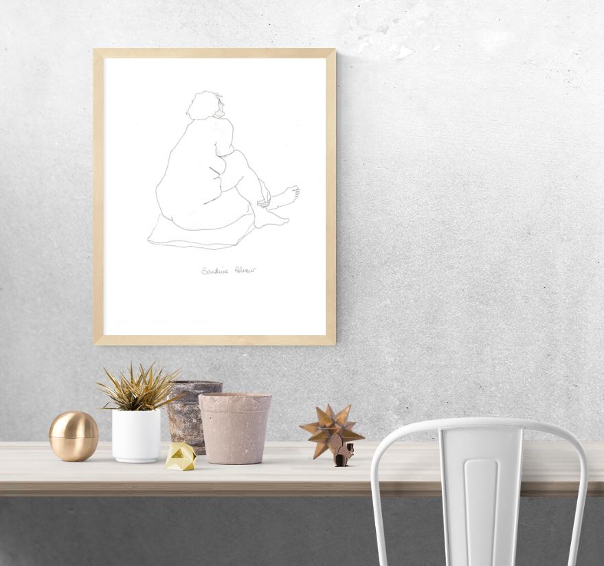 Sandrine has the uncanny ability to draw and capture the essence of the human figure. I know, because I’ve been part of the same figure drawing group with her for almost 2 years. I also know it takes real skill, talent and acute observation to be able to draw like that—and she makes it all look so effortless—believe me— it’s not. I wanted her art to be part of my very eclectic art collection.