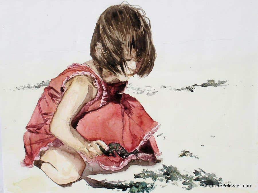 I own your painting “Louise at the Beach” and it has a place of honour above the fireplace in our sitting room. I remember walking into the gallery at Place Des Arts and falling in love with this piece. It reminded me so much of my younger daughter when she was a toddler. I asked my husband for this painting for my 40th BD gift. This piece is so beautiful, subtle and evocative!! Your painting is loved and admired every day.